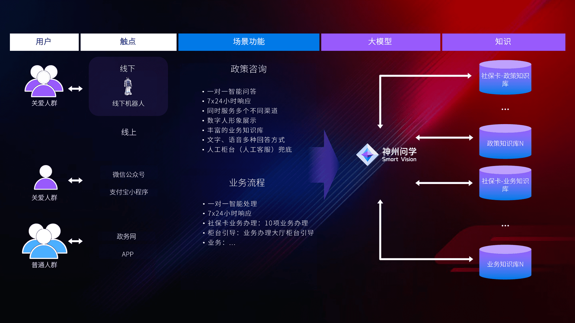 • 线上线下全覆盖:线上提供微信公众号、、、支付宝小程序、、、、政务网、、app多种渠道,,与线下机器人形成完整服务体系。。