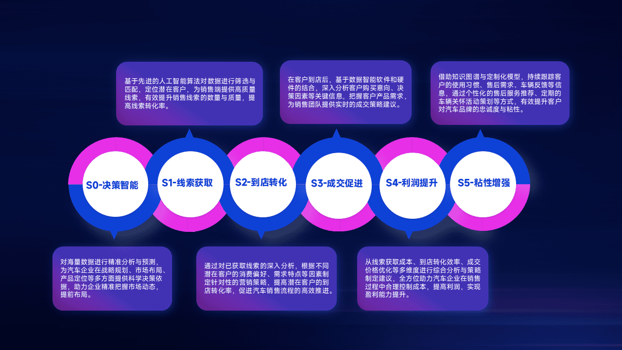 通过拓宽潜在客户来源、、、优化线索分配并提高到店转化率,,以增强销售效率。。。。同时,,利用线索数据不断优化分析模型,,,有效提升转化率,,扩大营销影响力。。。。